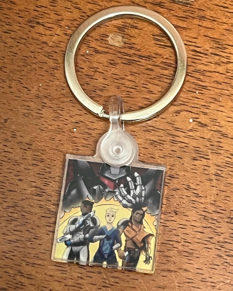 A small keychain with the cover to The Avandrus Theory #1