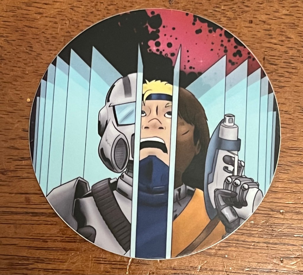 A small sticker with Captain Avandrus, Nico Avandrus, & Nicodemo from The Avandrus Theory.