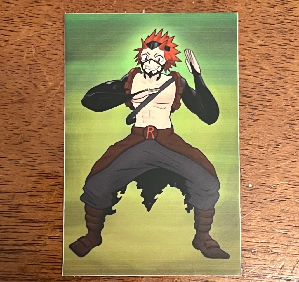 A small sticker with Eijiro Kirishima (Red Riot) from My Hero Academia.